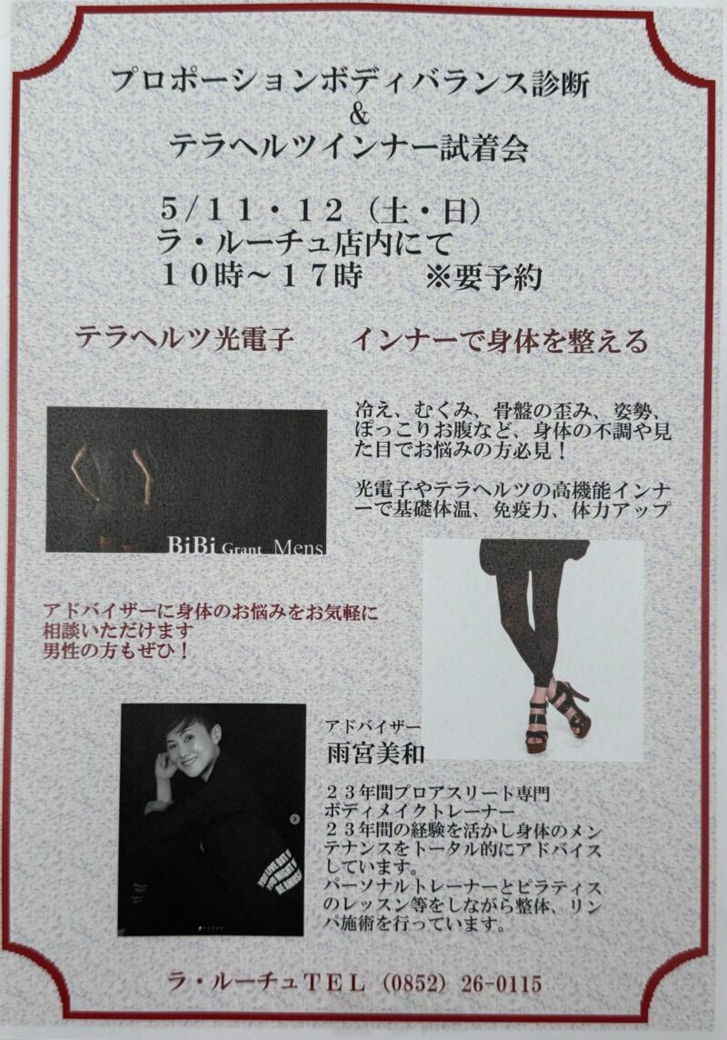 プロポーションボディバランス診断&テラヘルツインナー試着会
